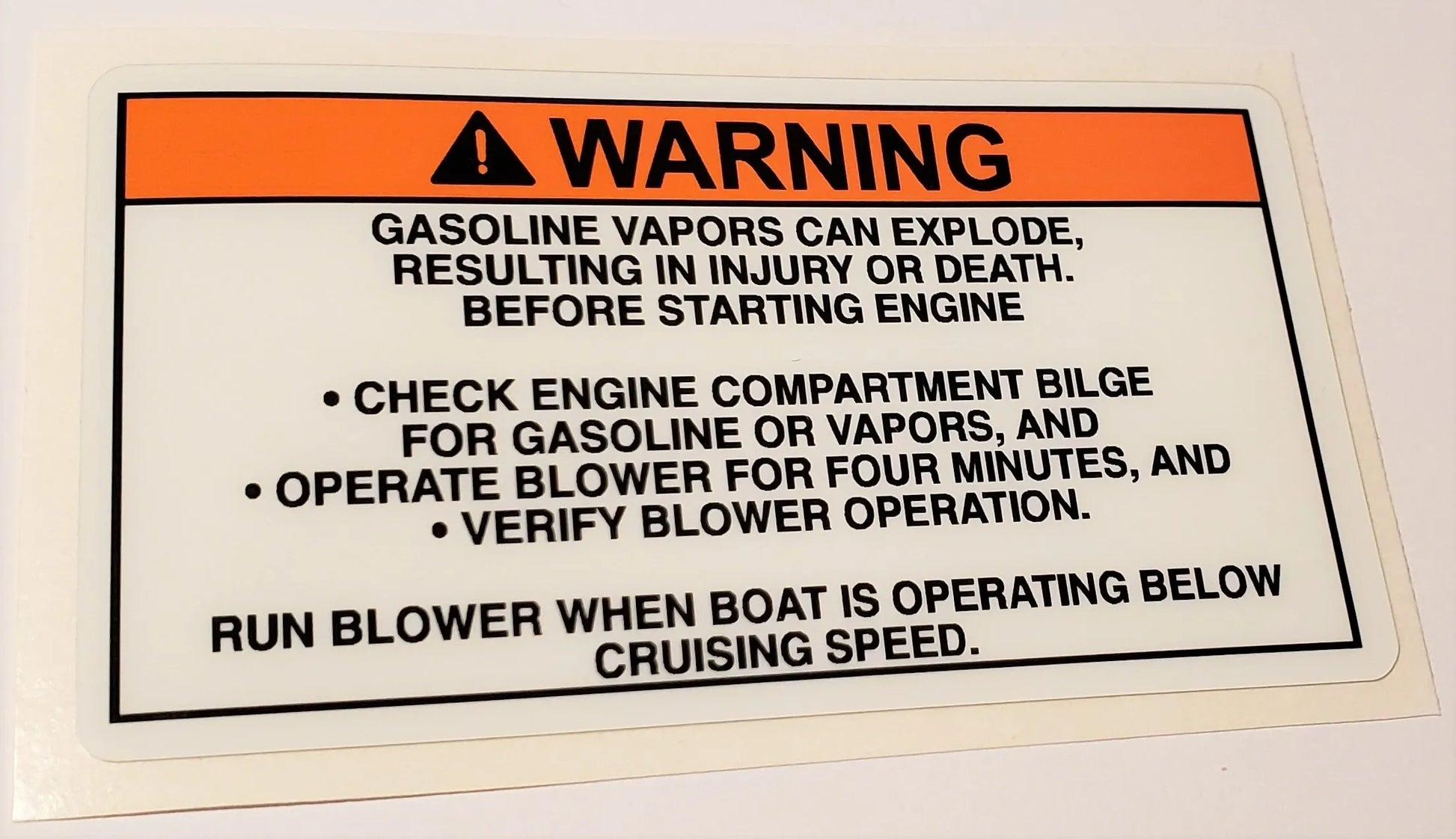 Recommended in ABYC Standards Section H-2.6.3.2.9. Size: 4.25" x 2.4"