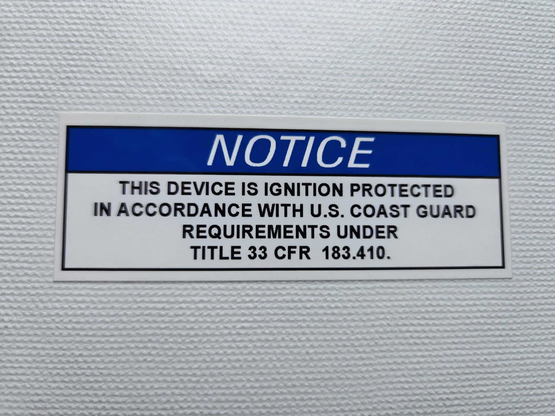 Recommended in ABYC Standards Sections A-6.9.2 (1). Size: 3.5" x 1.25"