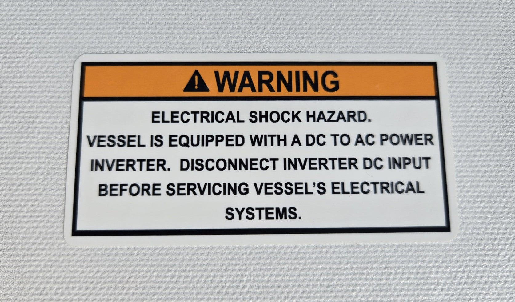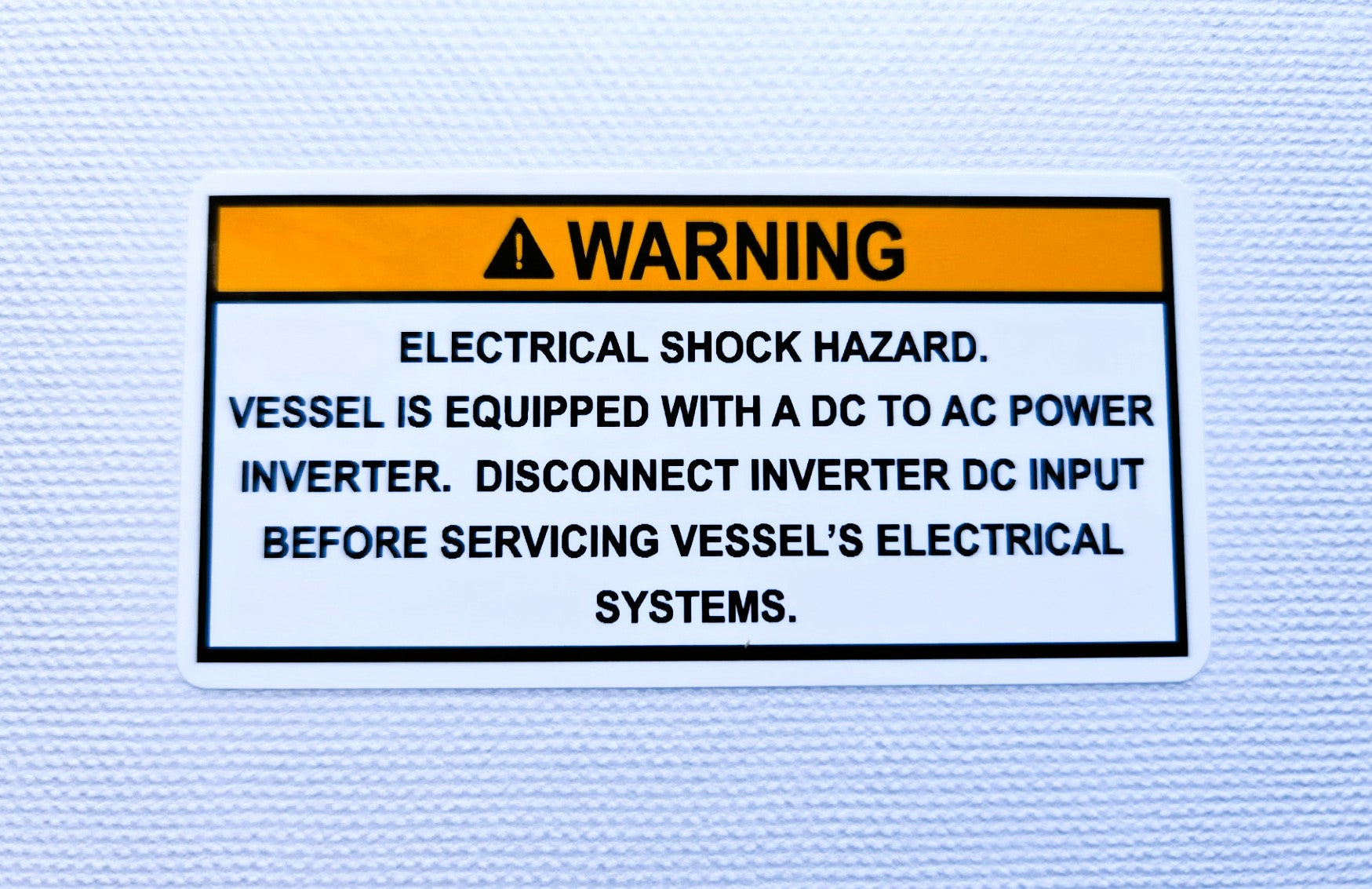 Recommended in ABYC Standards Section A-31.8.4.2. Size: 3.5" x 1.75"