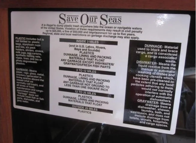 Conforms to Code of Federal Regulations for vessels longer than 26 ft. This is a glossy label, not a plastic plaque.